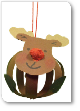 7. Zum Schluß kommt unten an den Papierball das Glöckchen und oben wird der rote Wollfaden als Aufhängung angebracht.